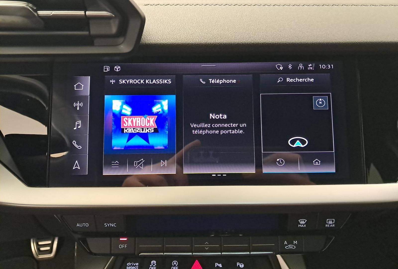 - Audi sound system : 10 HP incluant un HP central et un subwoofer, amplificateur à 6 canaux avec une puissance totale de 180 watts