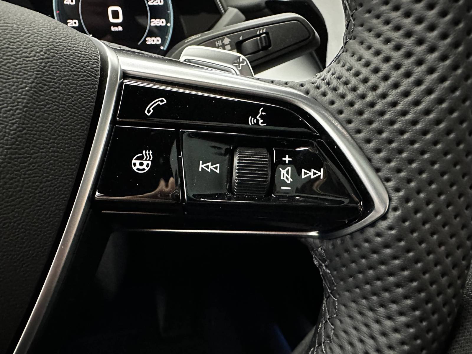 - Volant en cuir chauffant au contour sport, 3 branches avec multifonction plus, chauffage du volant et palettes de commande, avec méplat