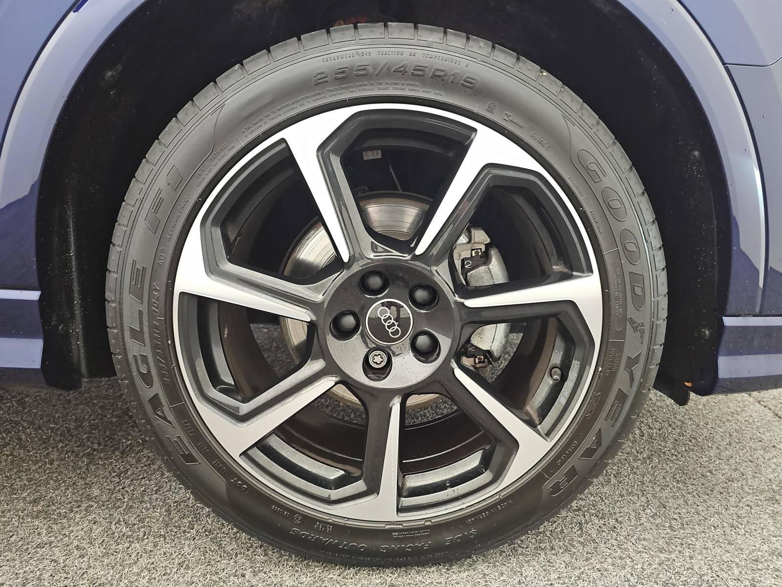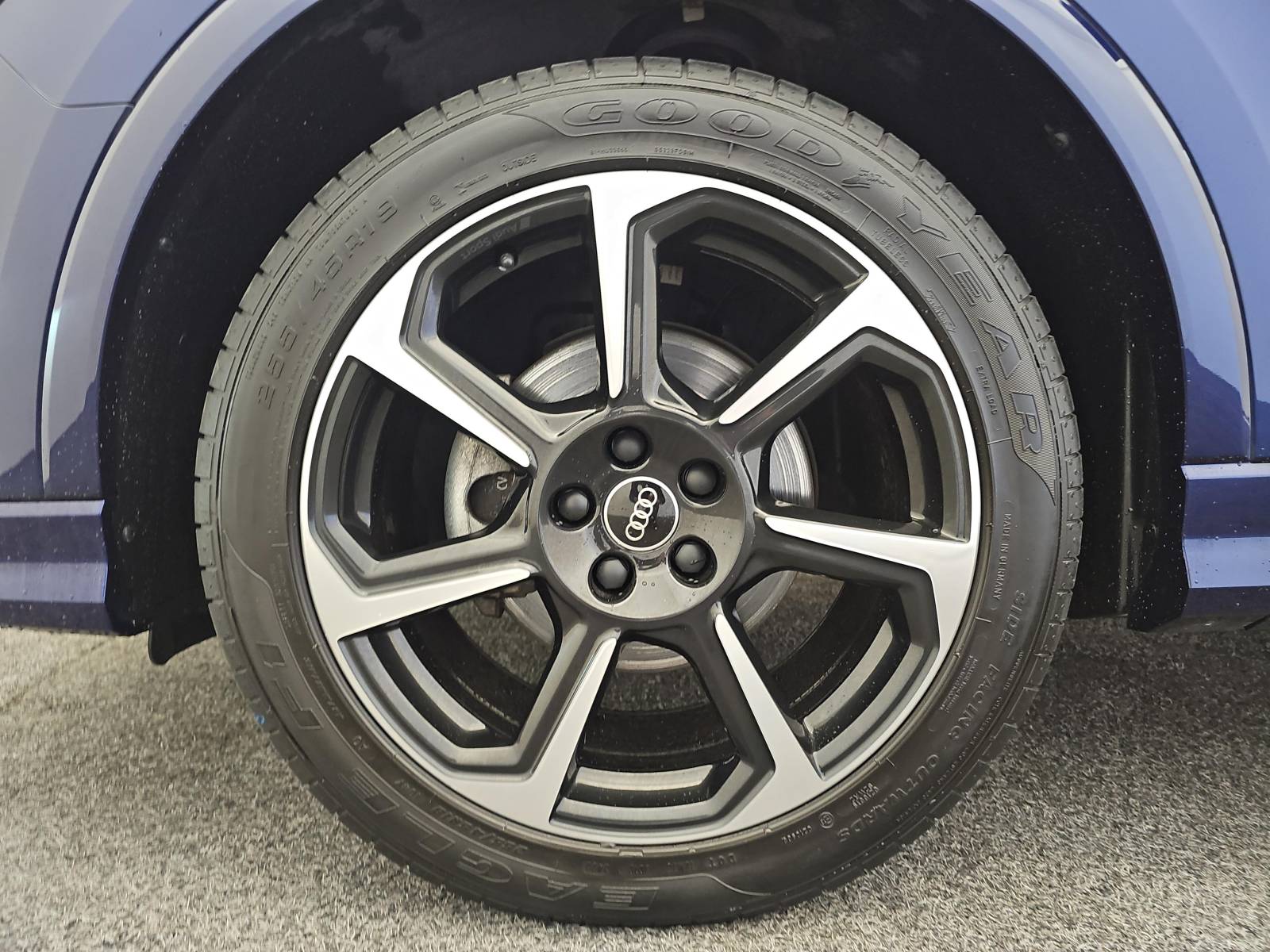 - Jantes en aluminium coulé 19" Audi Sport 7 branches en hélice noir anthracite brillant, polies 8.5Jx19", pneus 255/45 R19