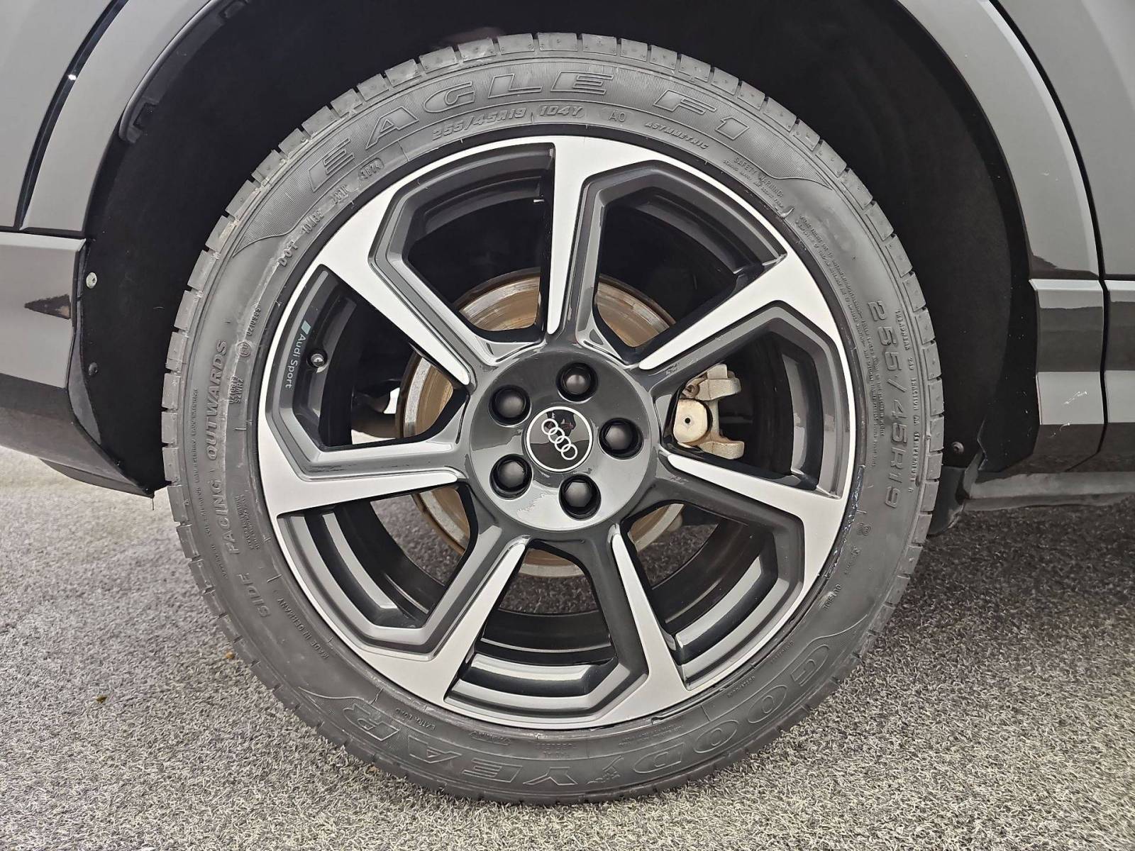 - Jantes en aluminium coulé 19" Audi Sport 7 branches en hélice noir anthracite brillant, polies 8.5Jx19", pneus 255/45 R19