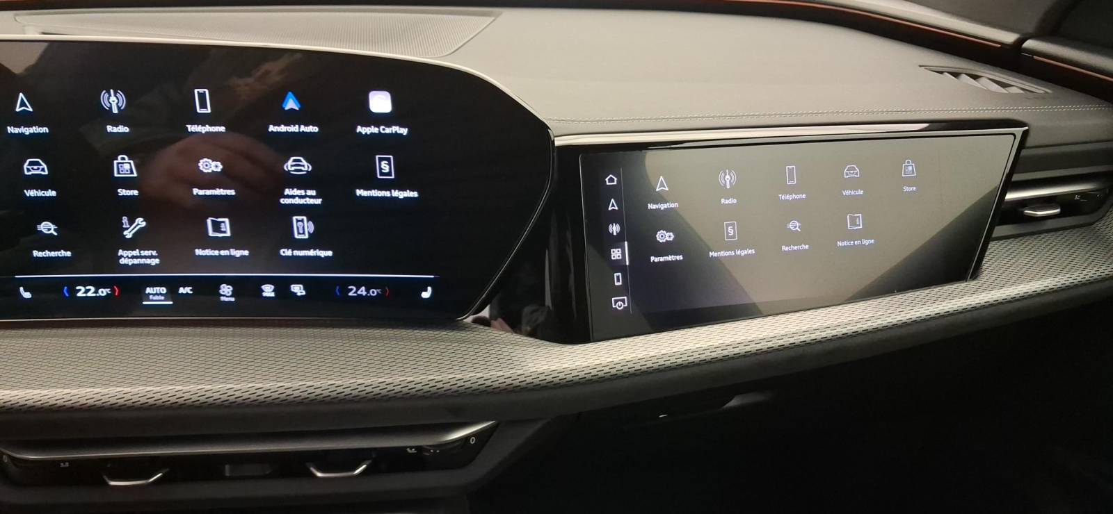 - MMI Navigation plus avec MMI touch Le système de navigation MMI plus avec MMI touch offre : - l'écran panoramique MMI avec technologie OLED, comprenant l'Audi virtual cockpit plus avec écran de 11,9 pouces ainsi que l'écran MMI touch de14,5" - système de navigation avec affichage des cartes et guidage routier sur l'écran couleur haute résolution de 14,5" - mise à jour des cartes en ligne - Affichage de cartes en 3D montrant de nombreux sites d'intérêt - informations routières en ligne - MMI search - MMI touch