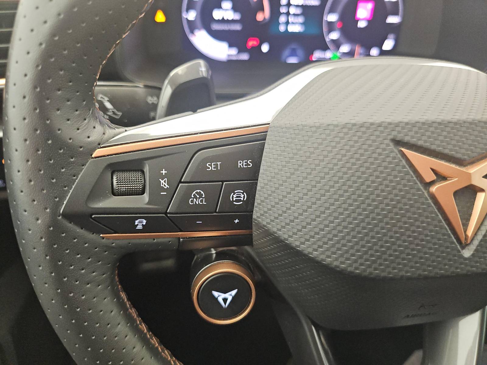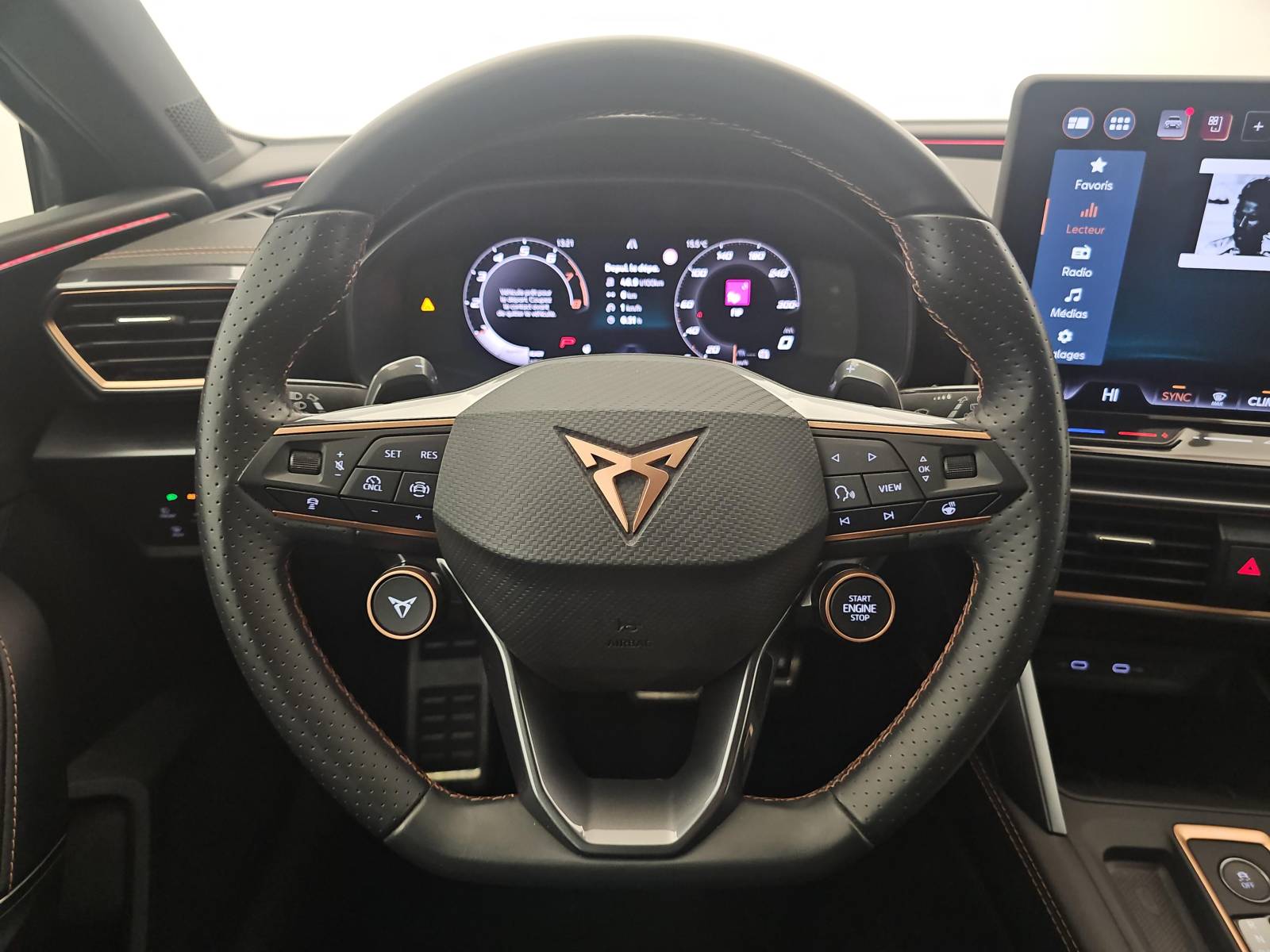 - Volant Supersports CUPRA en cuir avec boutons satellites, chauffant, avec palettes de changement de rapport
