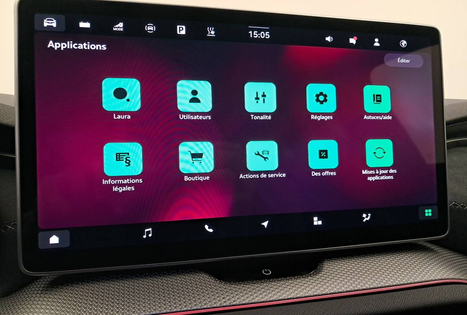 - Ecran d'info-divertissement 13'' avec système de navigation et nettoyeur d'écran