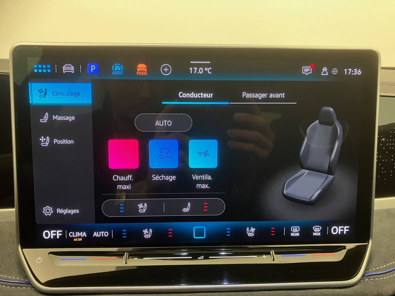 - Sièges AV massants sur 10 points de pression