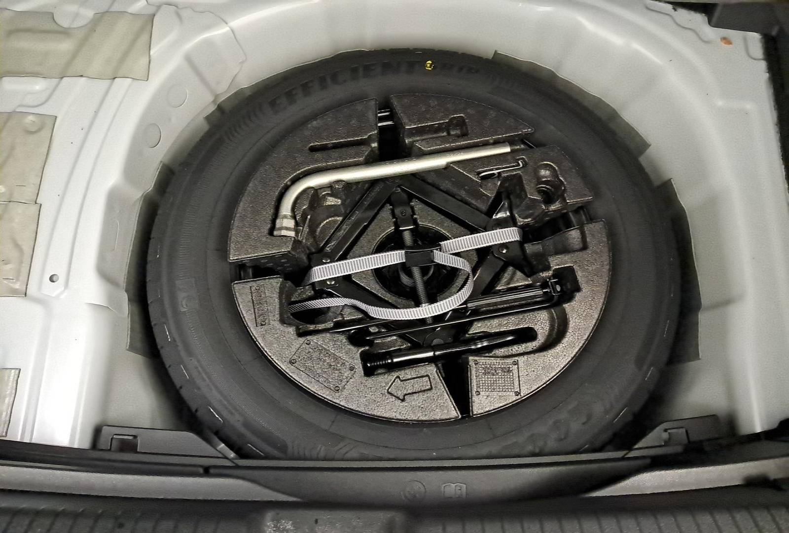 - Roue de secours acier avec pneus normal 15", outillage de bord et cric