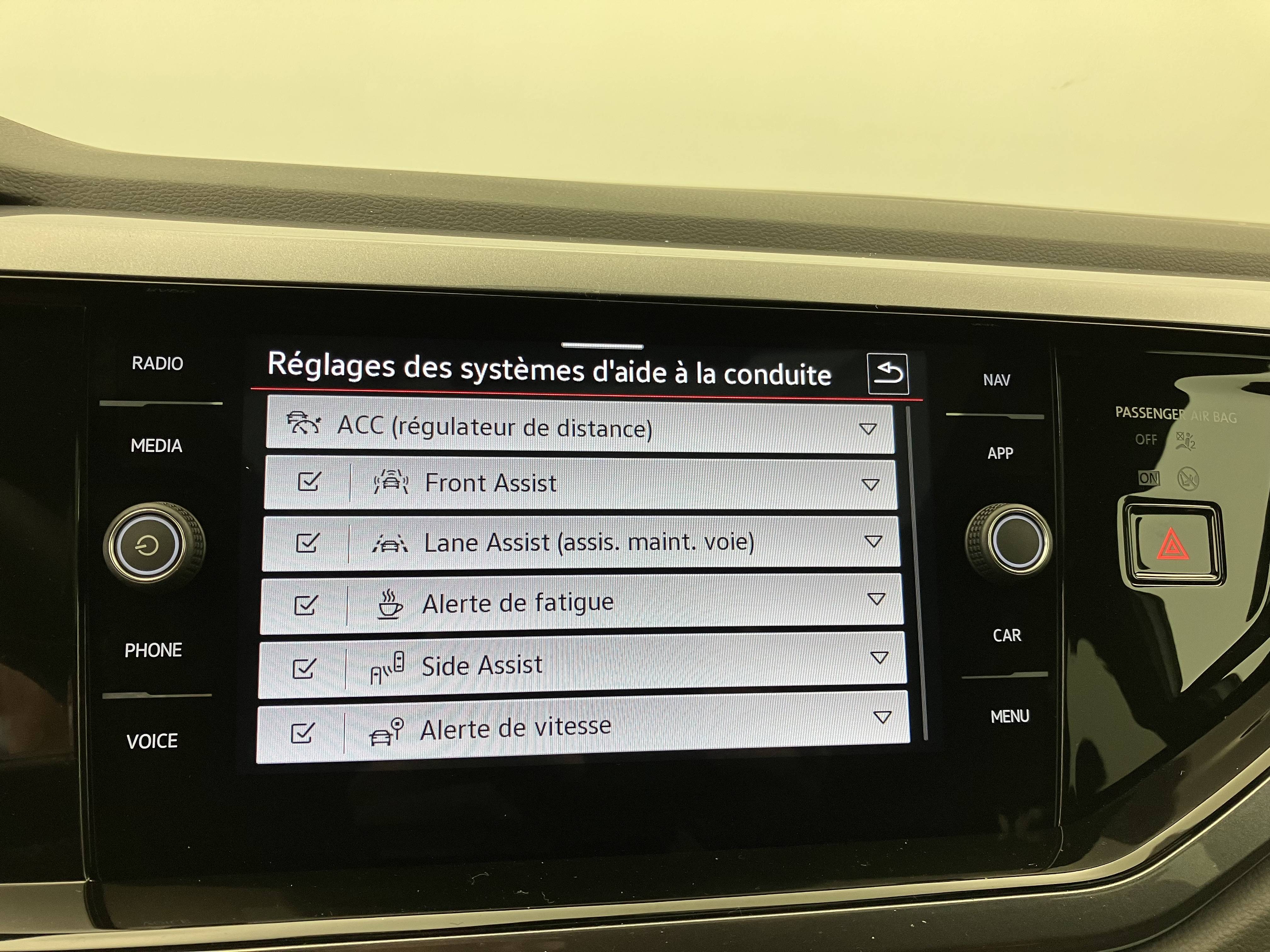 - Front Assist: système de surveillance périmétrique contribuant à la prévention des collisions avec fonction de détection des piétons et des cyclistes. Ce système freine automatiquement le véhicule en cas de détection d'obstacle aussi bien en ville que sur autoroute