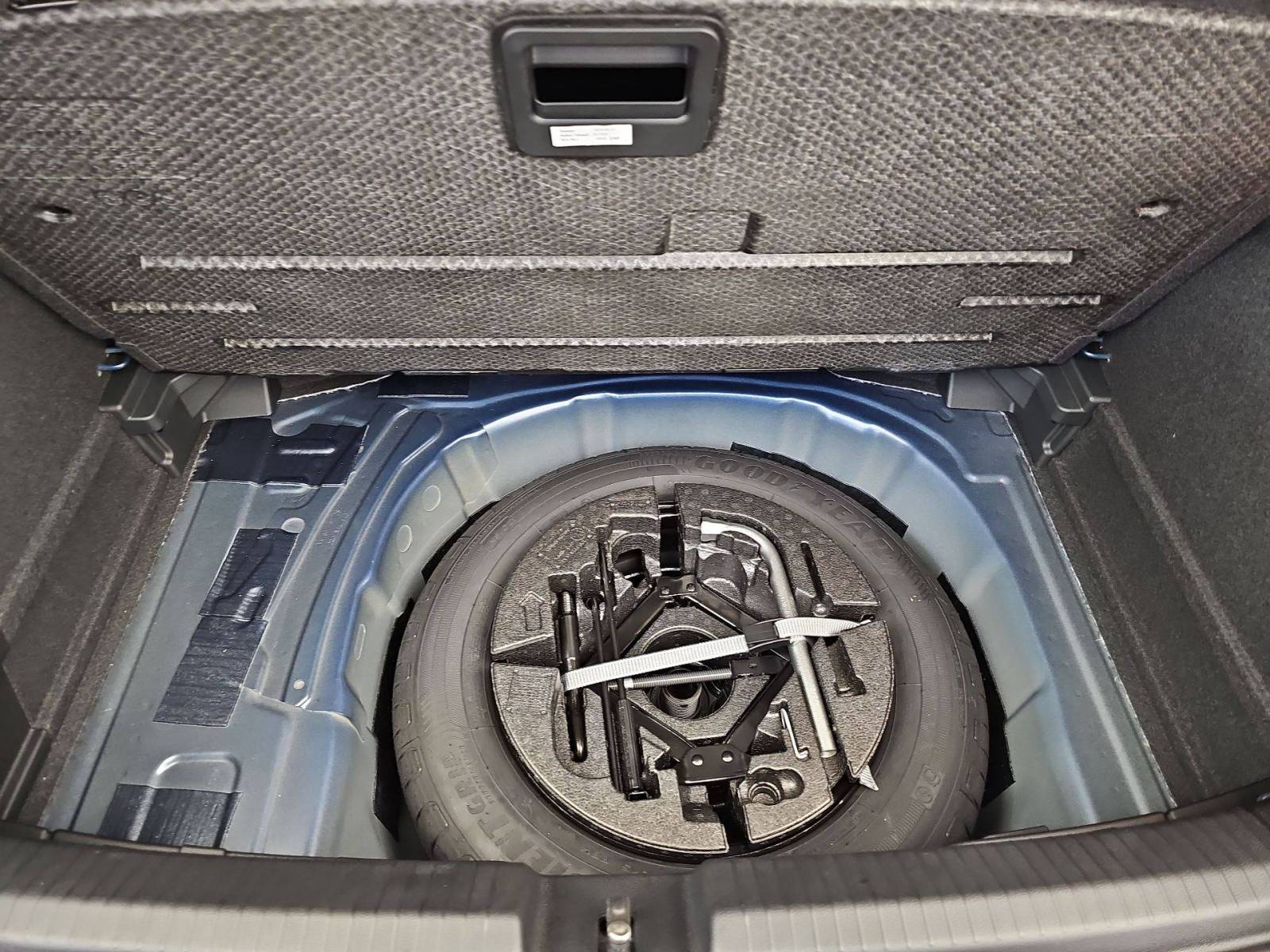 - Roue de secours 15'' à encombrement réduit, outillage de bord et cric (vitesse limitée à 80 km/h)