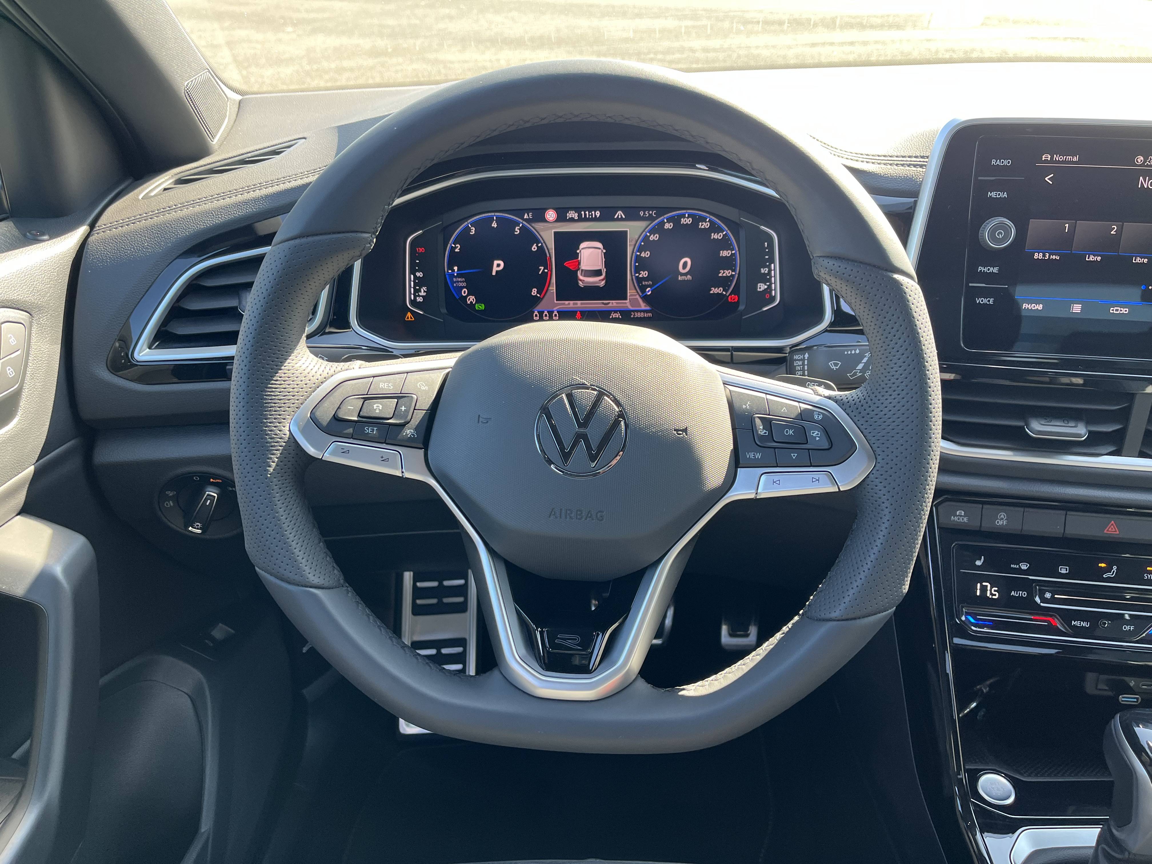 - Volant sport multifonction à touches physiques' en cuir et logo R-Line et capacitif