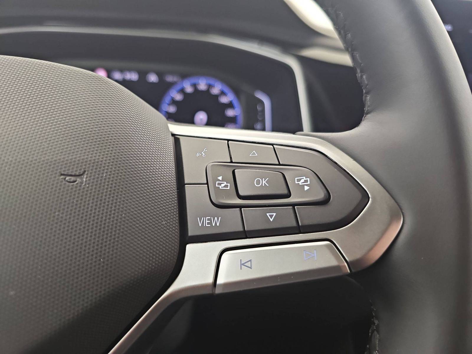 - Volant sport multifonction à touches physiques' en cuir et logo R-Line et capacitif