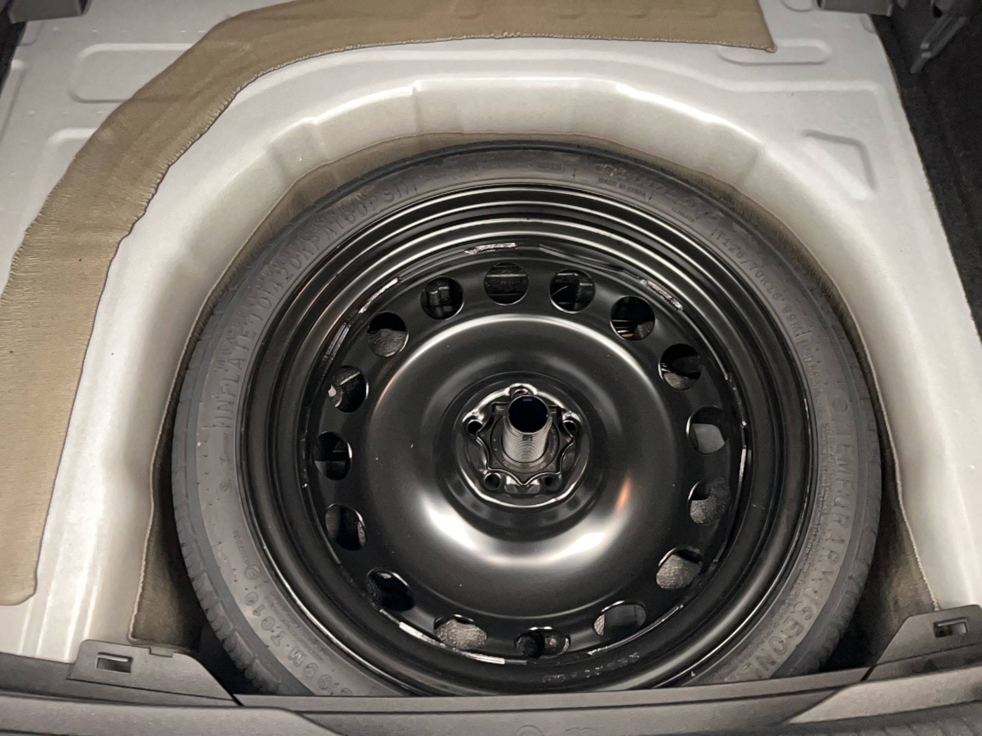- Roue de secours à encombrement réduit, outillage de bord et cric (vitesse limitée à 80 km/h)