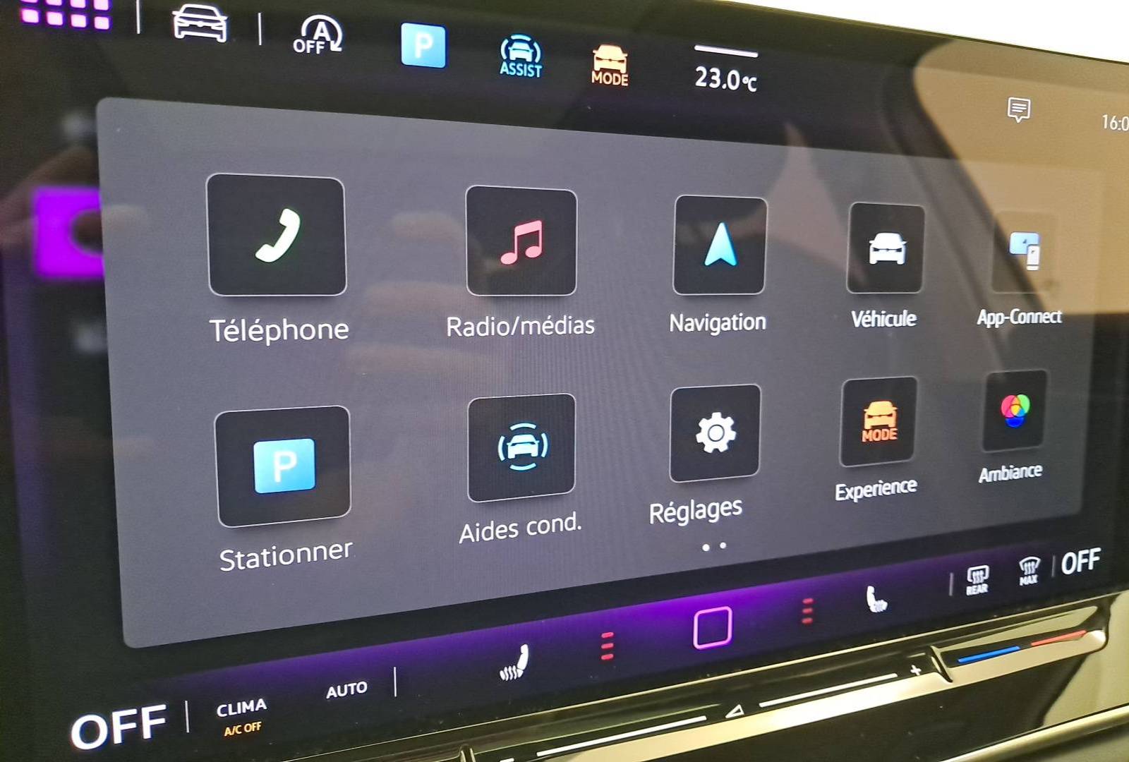 - Drive Experience Control: Sélecteur de profil de conduite avec écran OLED tactile - Permet d'ajuster le volume, le profil de conduite ainsi que les "Atmosphères" - Appuyer sur le sélecteur pour afficher les profils de conduite, passez votre doigt sur l'écran tactile pour basculer sur le choix des "Atmosphères" - Des "Atmosphères" sont déja paramétrées dans le véhicule mais vous pouvez créer vos propres atmosphères en définissant une playlist, un affichage Digital Cockpit, un éclairage d'ambiance, un niveau sonore et une tonalité
