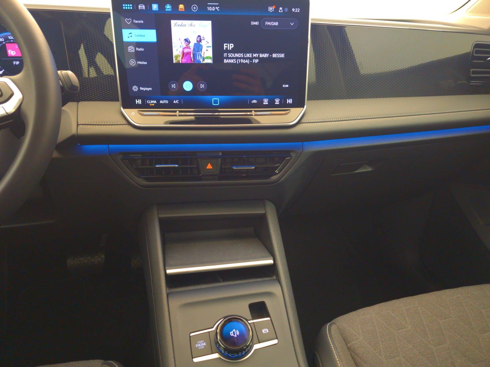 - Drive Experience Control: Sélecteur de profil de conduite avec écran OLED tactile - Permet d'ajuster le volume, le profil de conduite ainsi que les "Atmosphères" - Appuyer sur le sélecteur pour afficher les profils de conduite, passez votre doigt sur l'écran tactile pour basculer sur le choix des "Atmosphères" - Des "Atmosphères" sont déja paramétrées dans le véhicule mais vous pouvez créer vos propres atmosphères en définissant une playlist, un affichage Digital Cockpit, un éclairage d'ambiance, un niveau sonore et une tonalité