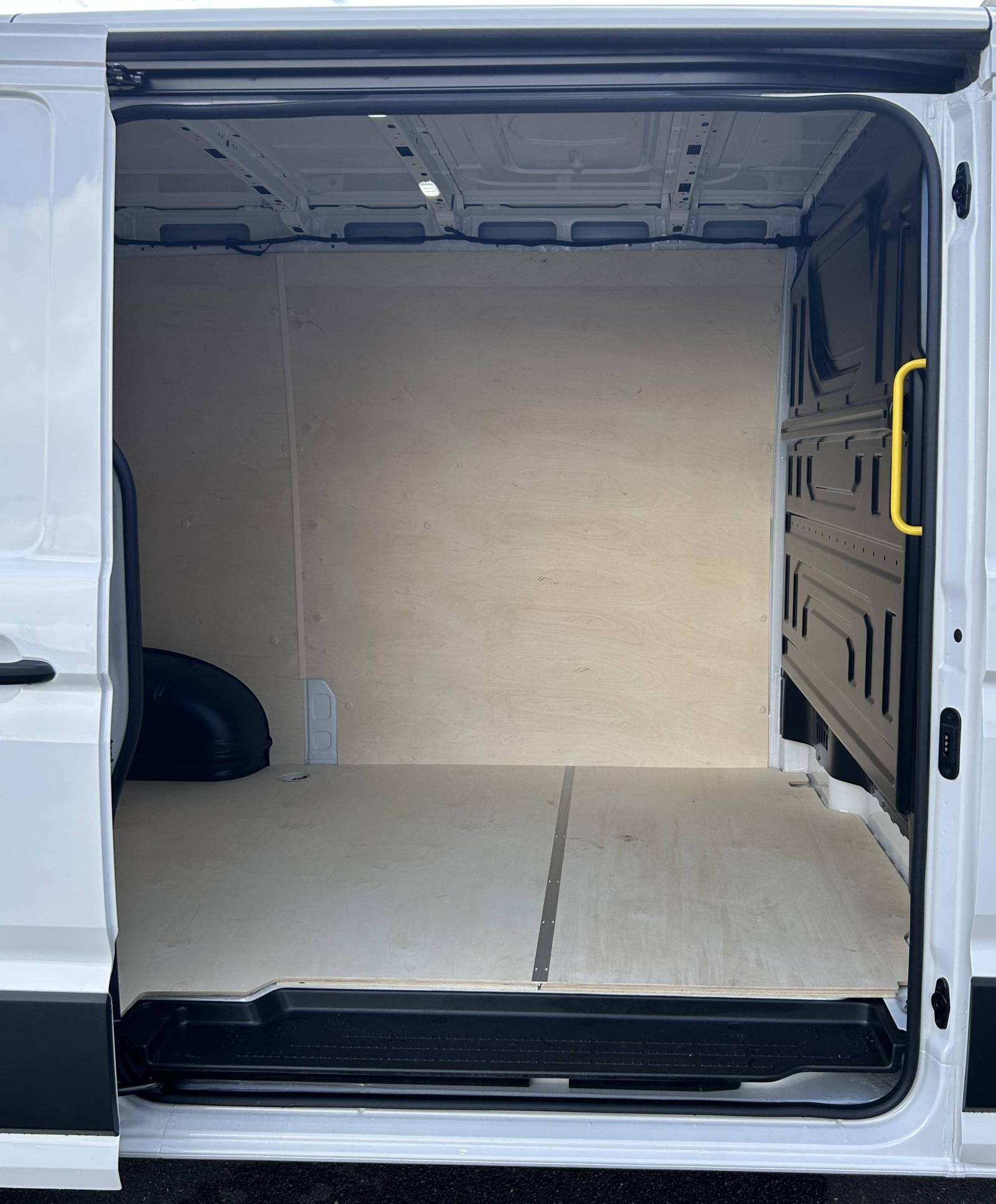 - Sans garniture plancher dans le compartiment de charge avec revêtement pour mécanisme fermeture sur sur les portes AR à vantaux